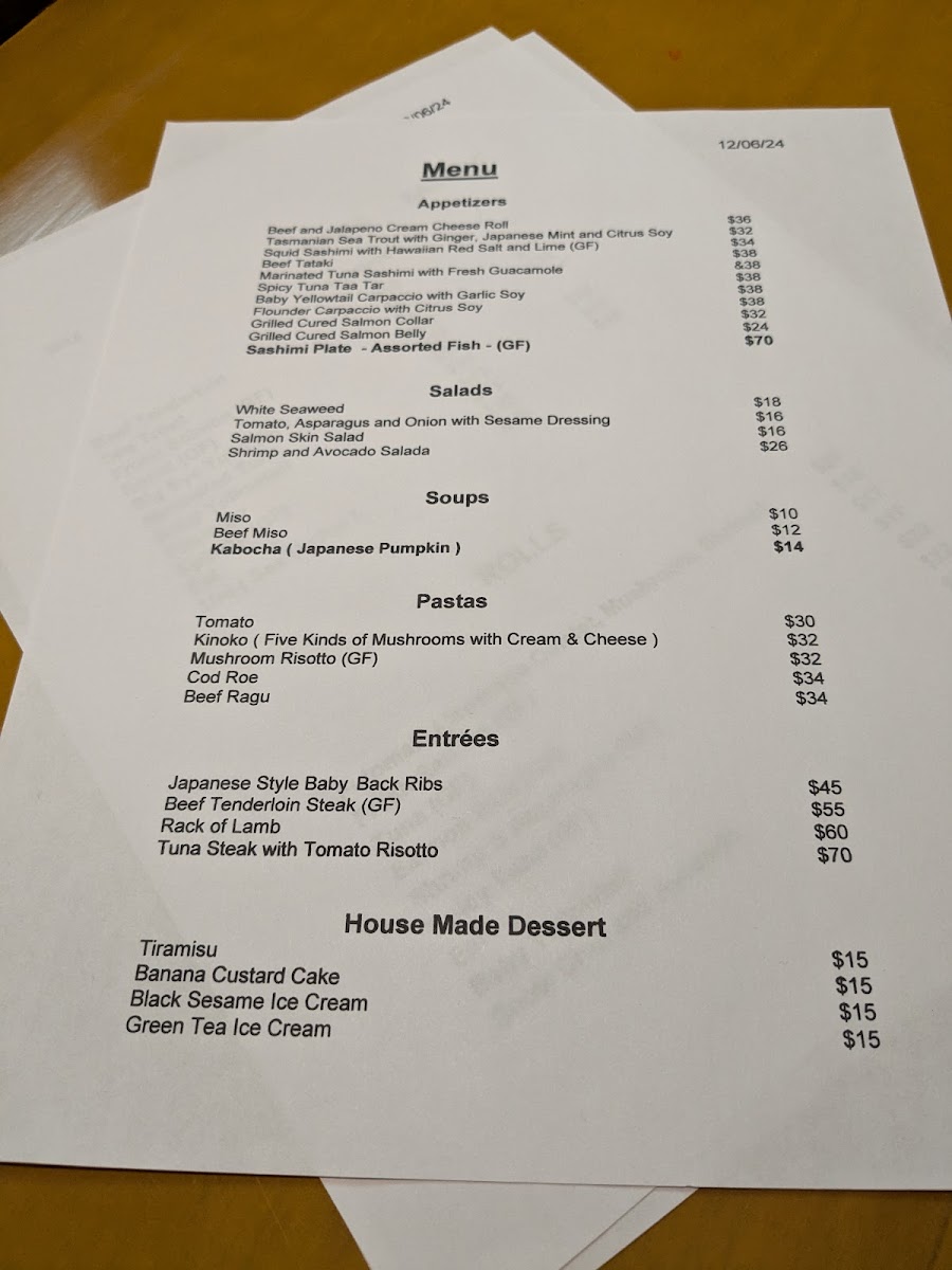 Moving on to the salads, you cannot miss the Chilled Mustard Green with Sesame Dressing. Its crisp and refreshing quality beautifully complements the rich flavors of the sushi. For a hearty touch, the restaurant also offers remarkable pasta selections like the creamy Kinoko Risotto or the bold Beef Ragu, seamlessly combining Japanese craftsmanship with Italian passion.